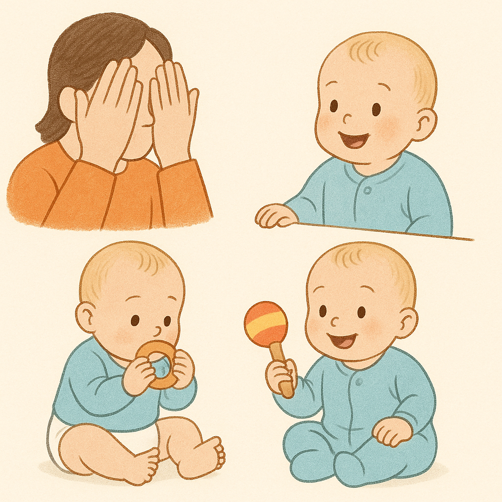 이 시기에 아이들은 대상 영속성이라는 개념을 배우는데, 이는 눈에 보이지 않더라도 어떤 대상이 여전히 존재한다는 것을 인식하는 능력이에요.